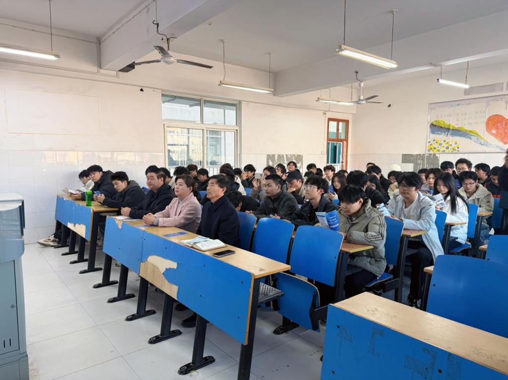 宣讲会线下会场设在3号教学楼3403教室,应用化工技术专业在校学生到场参加,同时通过线上平台同步面向应用化工技术专业外出实习学生进行直播。学院党总支书记芦晓星、院长陈思顺、教务科负责人王涛、三个年级辅导员共同参会,体现出学院对学生就业工作的高度重视。宣讲会由党总支副书记刘心宽主持。