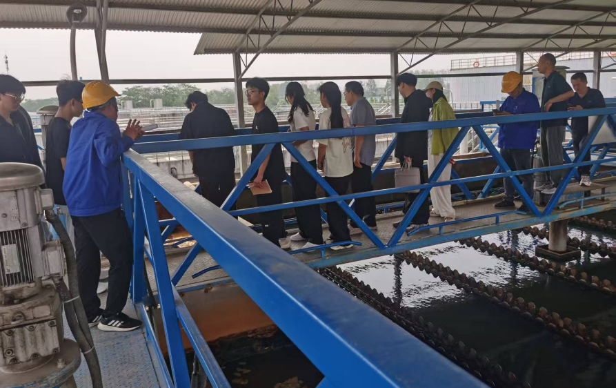 师生们实地参观了各个处理单元,包括厌氧池、好氧池、沉淀池以及污泥处理车间等。同学们认真观察设备运行情况,积极提问,工作人员都一一耐心解答。