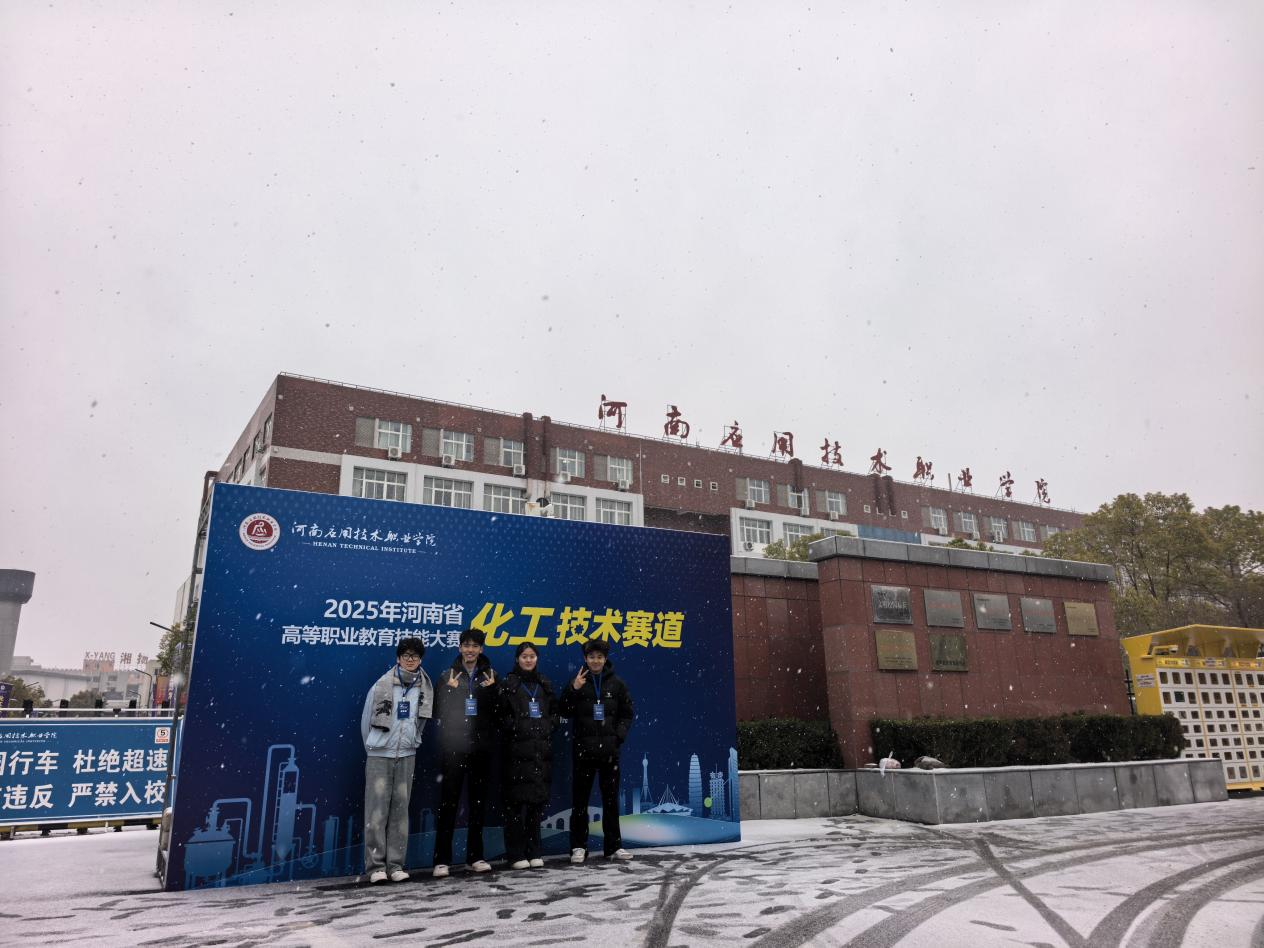 12月12日至14日,由河南省教育厅主办的全省高等职业教育技能大赛化工技术赛道比赛顺利举行。刚刚于今年3月份成立的tyc522cc太阳成集团,首次组队出征省级高水平技能竞赛便传来捷报:在竞争激烈的“化工赛道”赛项中,由朱明阳、陈庆庆博士指导,边隆恩、杨若愚、李沂霏、张佳硕同学组成的参赛团队,凭借扎实的专业基础、出色的实操能力和稳定的临场发挥,最终荣获二等奖,实现了在此项赛事中的历史性突破。